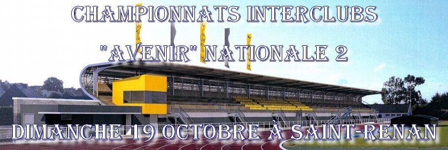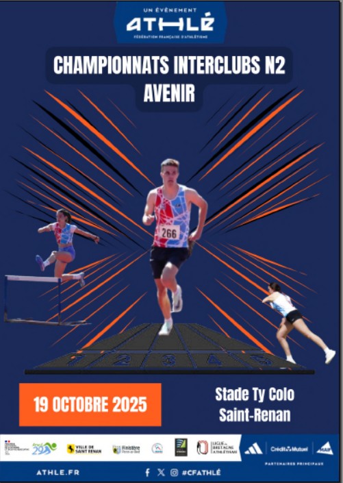 L'Iroise Athlétisme est fier d'avoir été retenu pour recevoir les Championnats de France INTERCLUBS AVENIR NATIONAL 2 sur le Stade Municipal à Saint Renan le 19 Octobre 2025.